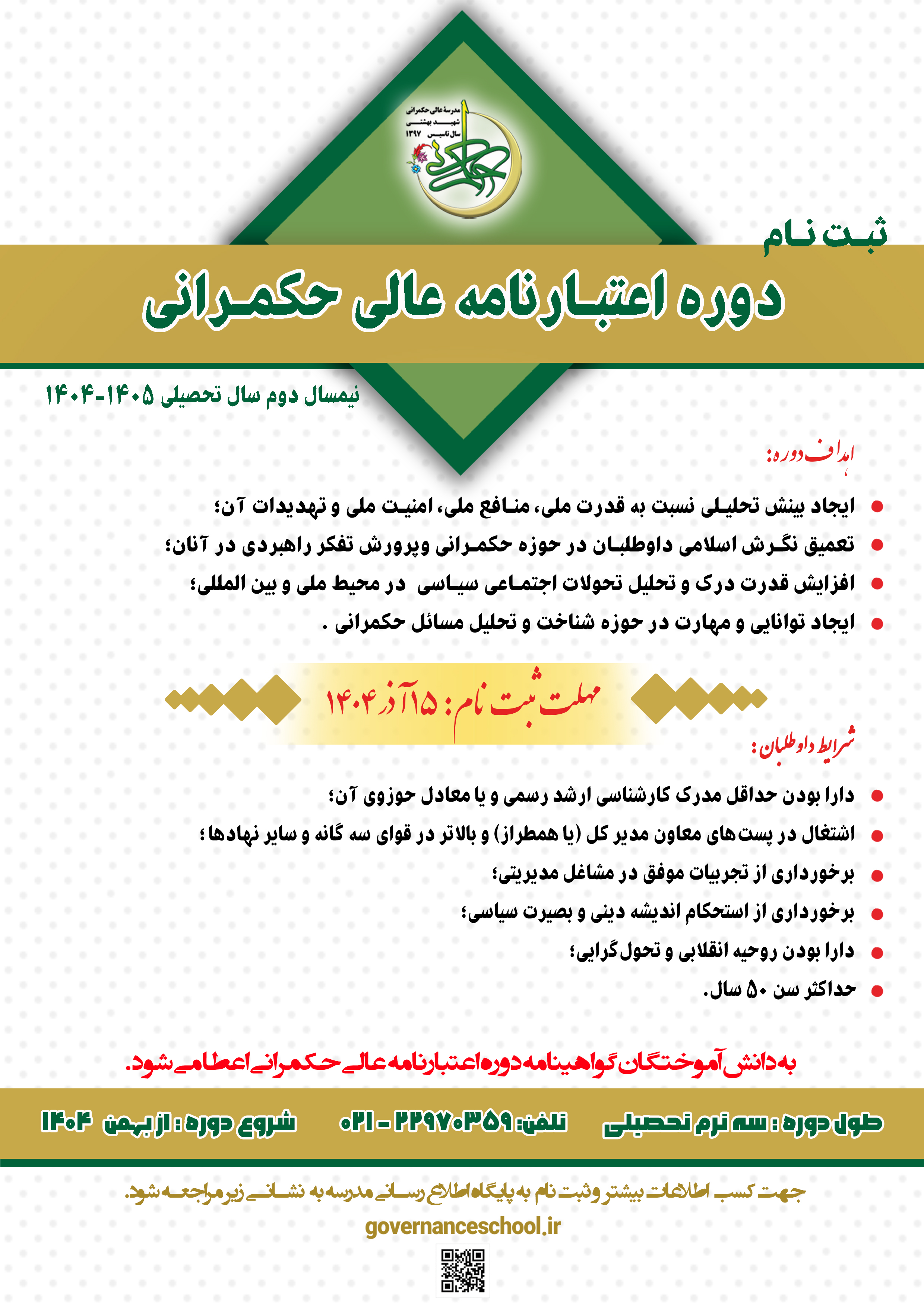تذکر: به دانشآموختگان گواهینامه « اعتبارنامه عالی حکمرانی» اعطا میشود.